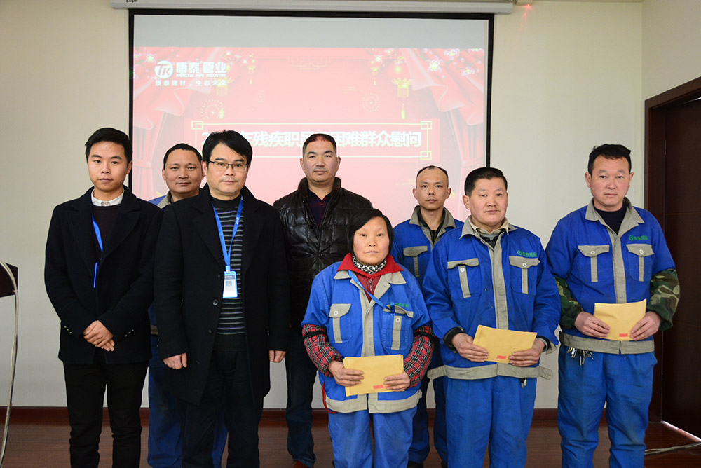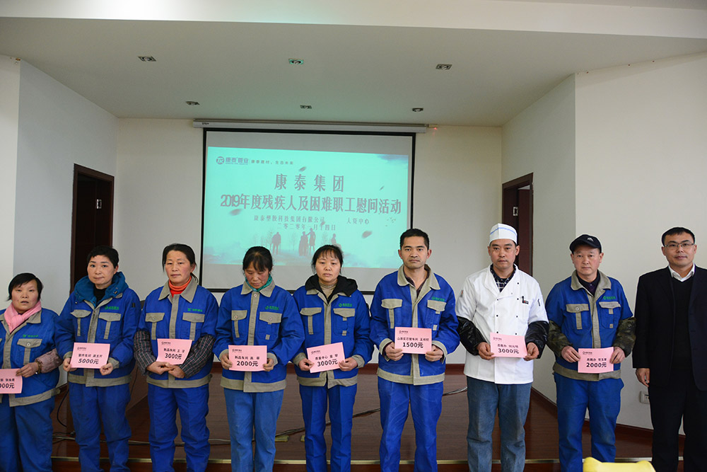 2019.02迎新年 送溫暖-康泰集團向殘疾職工、家庭困難職工發(fā)放慰問金春節(jié)將至,溫暖送來。為傳承扶貧濟困的傳統(tǒng)美德,表達公司對殘疾職工和家庭困難職工的關(guān)懷和照顧,讓他們感受到康泰大家庭的溫暖,1月27日上午,康泰集團開展了“殘疾職工、家庭困難職工慰問活動”??堤┘瘓F工會主席吳彬向15位殘疾職工、家庭...閱讀人數(shù):7723