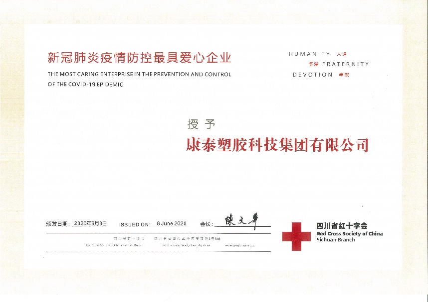 2020.11康泰集團榮獲四川省“新冠肺炎疫情防控最具愛心企業(yè)”稱號近日,為表彰康泰塑膠科技集團在新冠疫情防控工作中的突出貢獻,四川省紅十字會授予集團“新冠肺炎疫情防控最具愛心企業(yè)”榮譽稱號。2020年1月,正當全國人民喜迎新春佳節(jié)時,一場突如其來的新型冠狀病毒肺炎疫情肆虐中華大地。面對新型冠狀病...閱讀人數(shù):7728 -